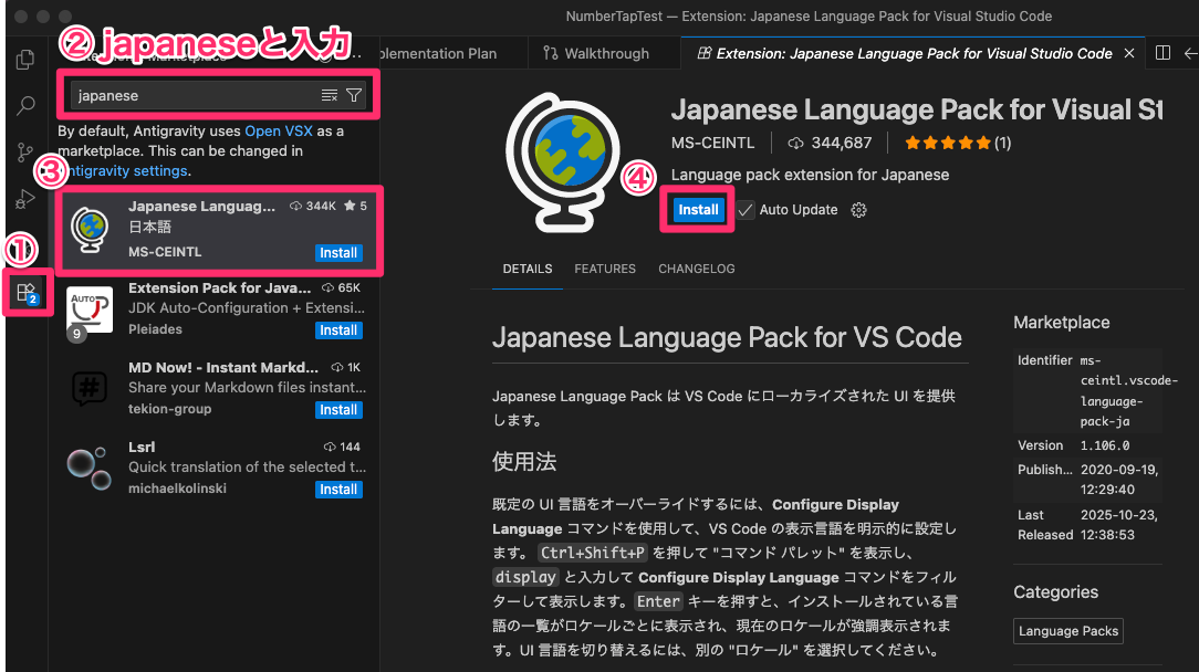 プロジェクトタブの「+」ボタン