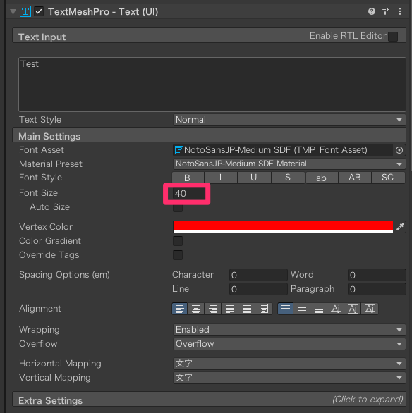 するとフォントサイズを入力する欄が緑色になり言語毎の設定対象となります。