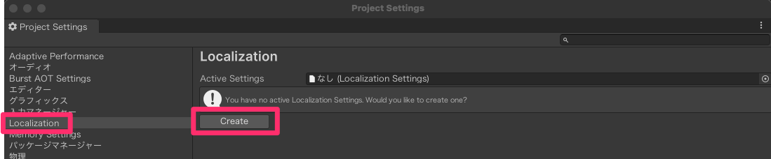 Unity公式の多言語化パッケージLocalizationを使用しました。