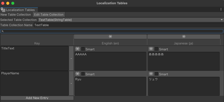 Localization Tablesの設定時にSmartのチェクボックスにチェックを入れます。