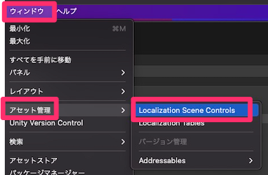 この切り替えはよく使用するため Localization Scene Controlsの画面をUnityエディター上に固定してしまうのがおすすめです。