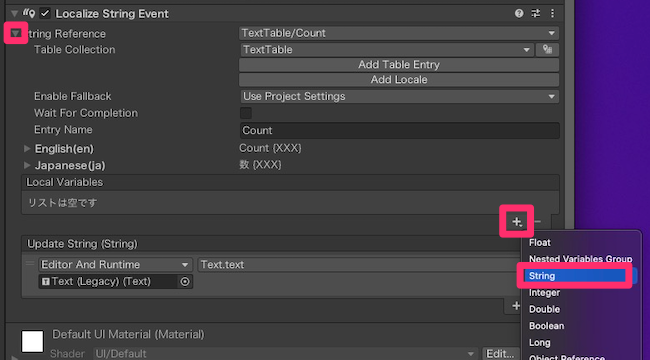 すると、以下のように「Localize String Event」コンポーネントが追加されます。