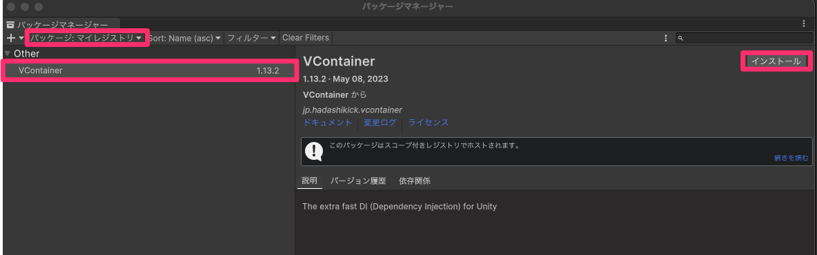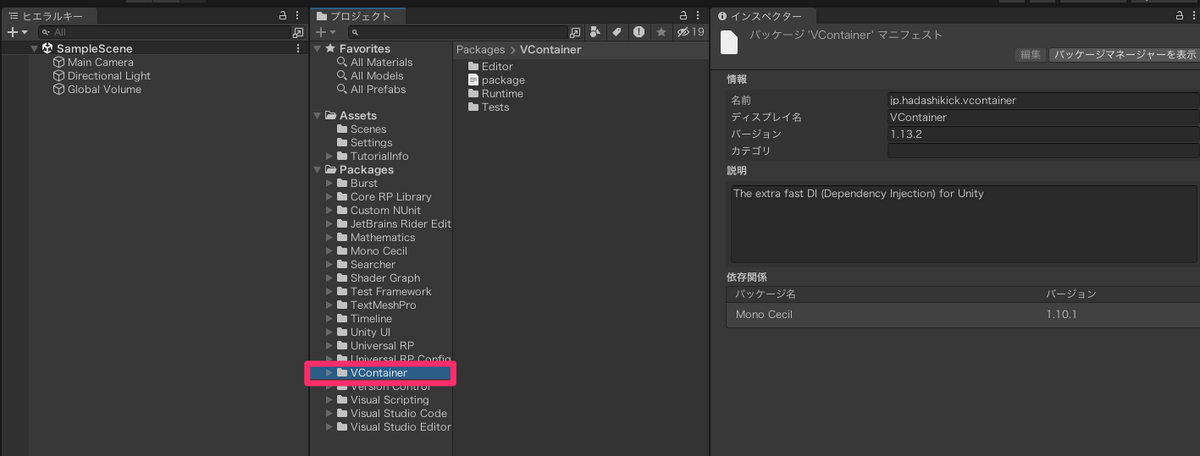 VContainer 1.13.2 (Unity 2018.4以上のバージョンが必要)