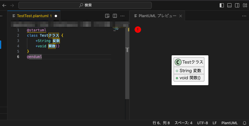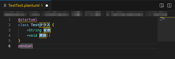 PlantUML の文法に従って、テキストベースでクラス図を記述します。