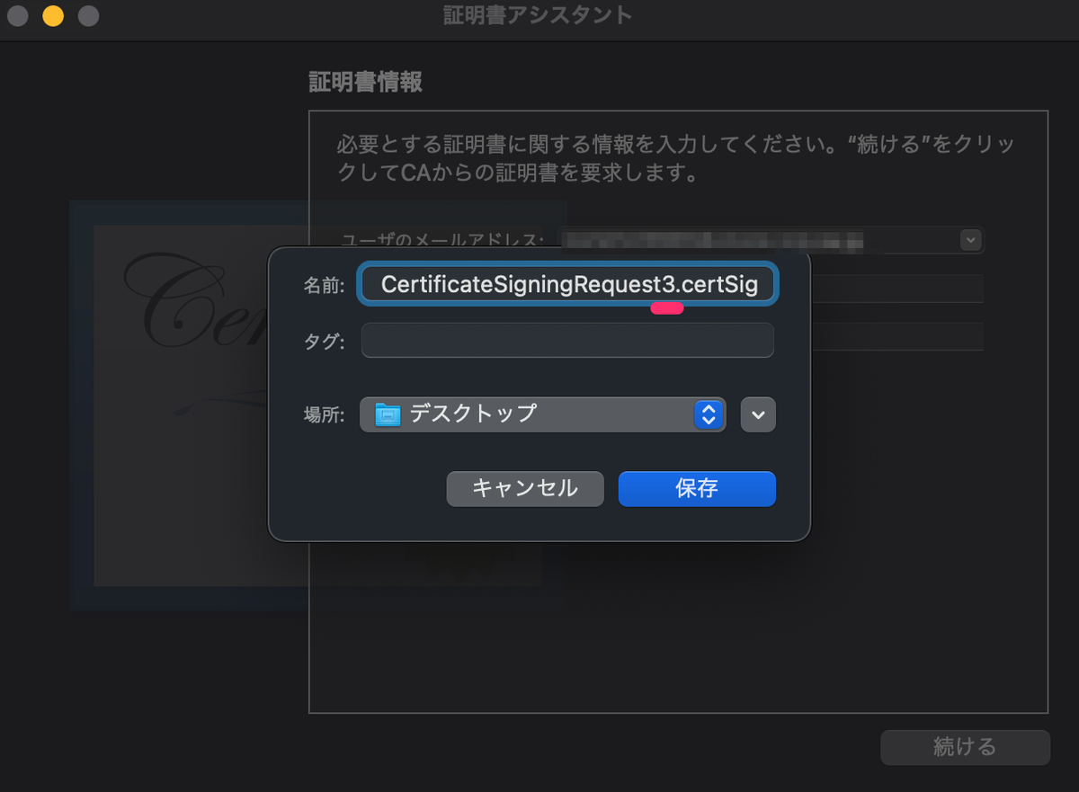 CertificateSigningRequest.certSigningRequest ファイルを新しく作成したら