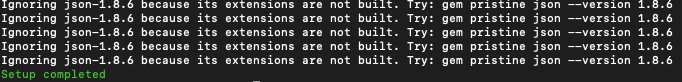 Ignoring json-1.8.6 because its extensions are not built. Try: gem pristine json --version 1.8.6